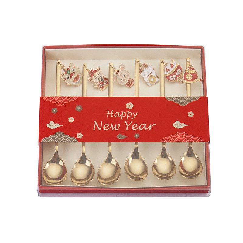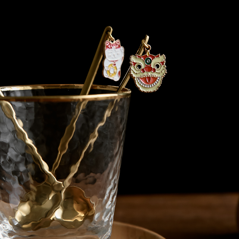 Coffee Spoon-Golden-Awake Lion Coffee Spoon-Golden-Auspicious Mouse Coffee Spoon-Golden-Fortune Cat Coffee Spoon-Golden-Foe Coffee Spoon-Golden-Gong Bag Coffee Spoon-Golden-Gong Drum Coffee Spoon -