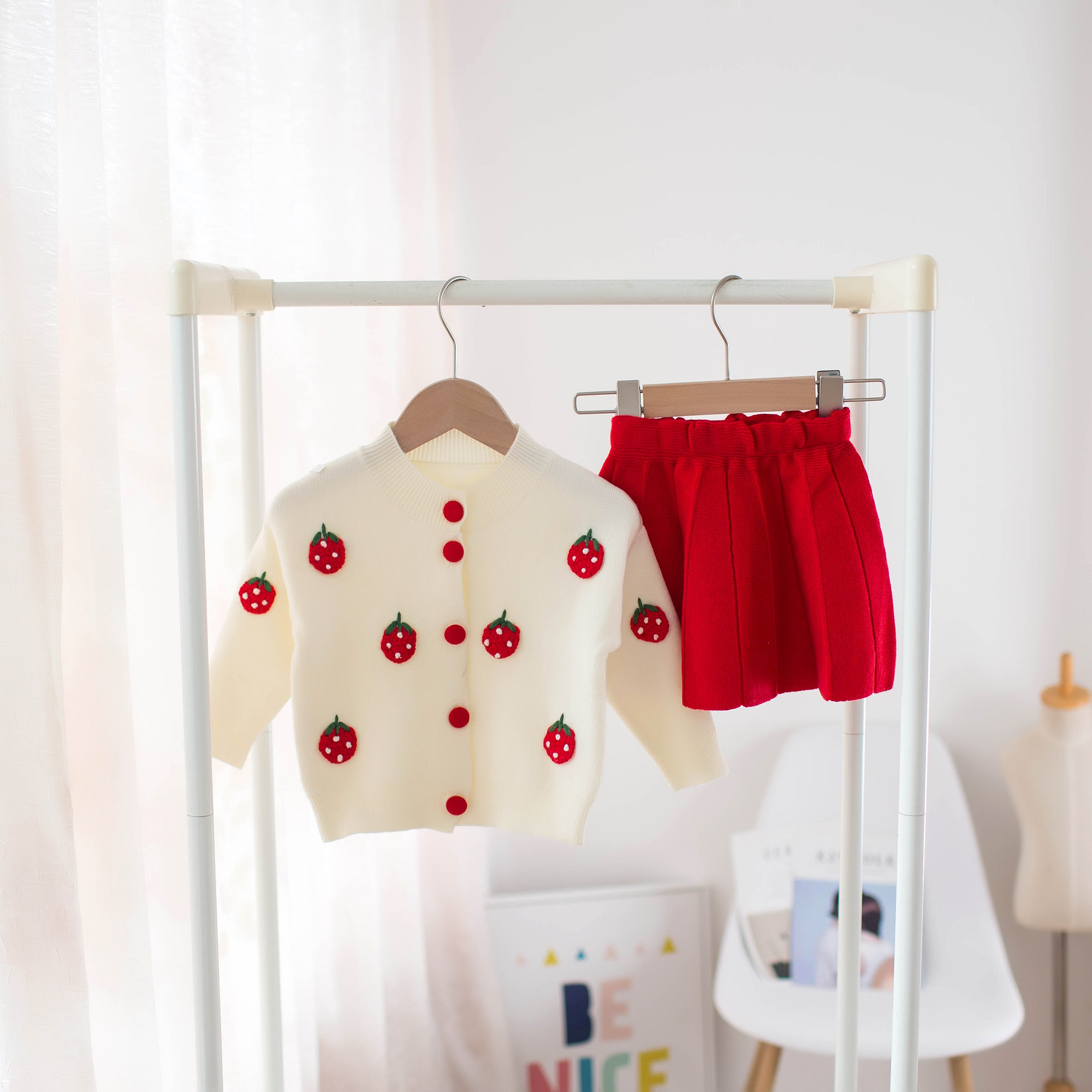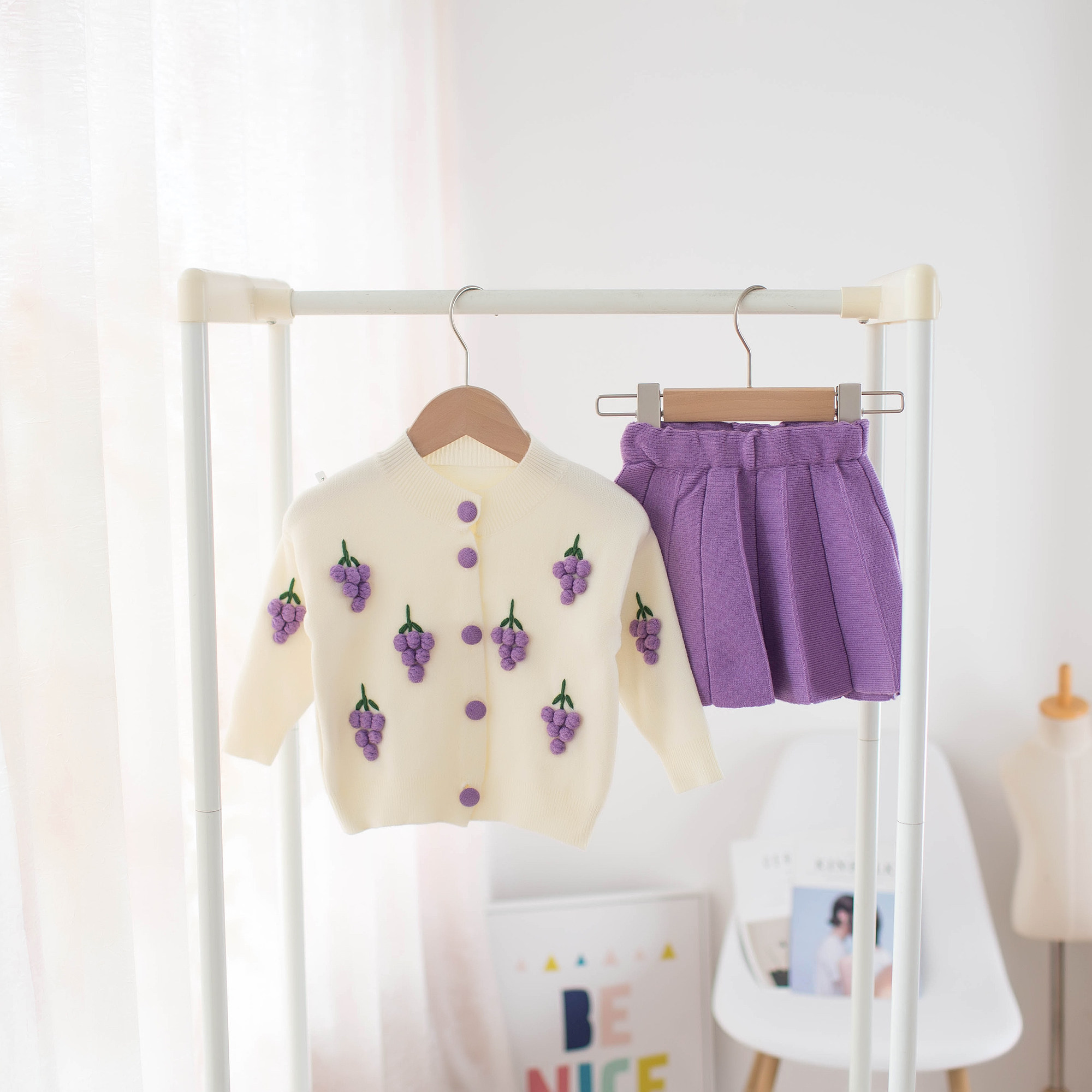 Spring and autumn new children's baby sweaters suit two sets of small and medium girl knit cardio-hoodie jacket