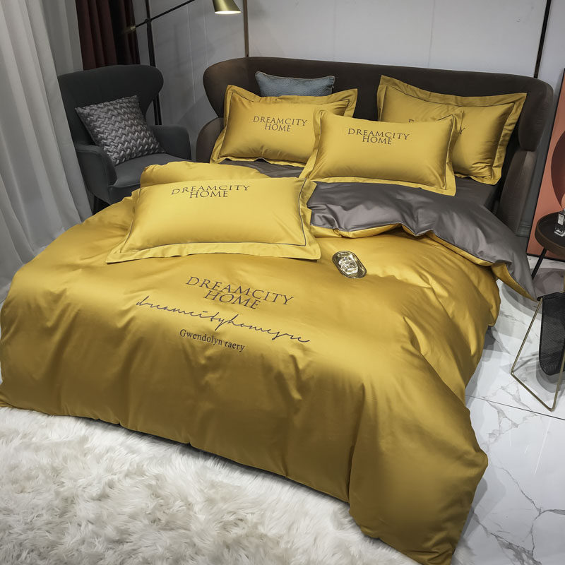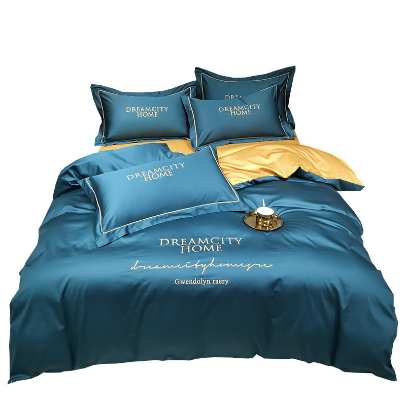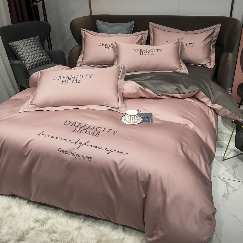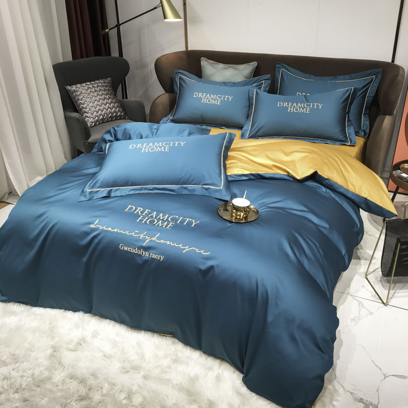 Light extravagance brief about 40 full cotton embroidered double parquet of four pieces of pure cotton linen bed Ogasawara bed with supplies