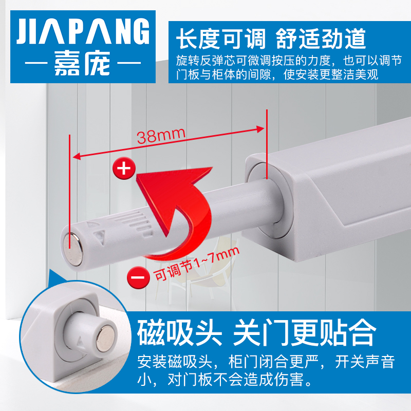 JiaPen Cabinet Door Rebound Device Touch Switch Free Handle Press-Press Type Press-Bounder Magnetic Attraction Invisible Spring Self-Bounced Bead