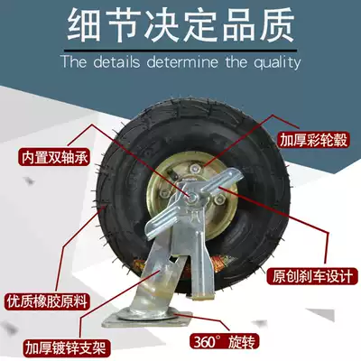 ㊙️Inflatable universal wheel 6 8 10 inch flat cart rubber directional air pump wheel with brake heavy wheel