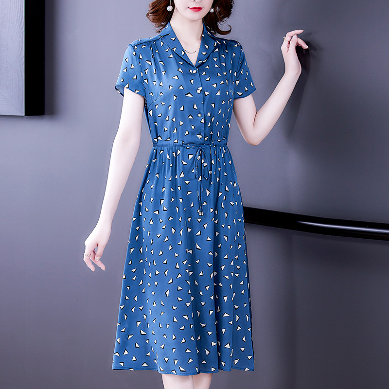 Fashion Temperament Woman Taste Foreign Dress 2022 New Summer Acetate satin 40-year-old woman's dress true silk mulberry silk