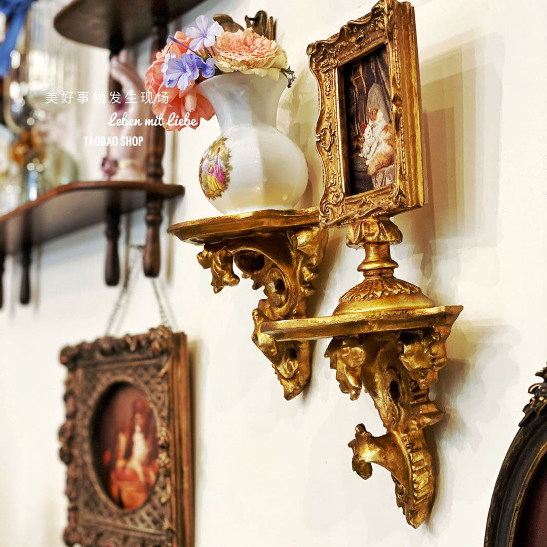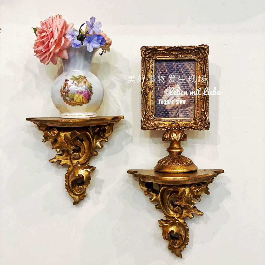 Beautiful things happen on the scene Home furnishing European-style retro-style golden flower-wrapped wall bracket shelf