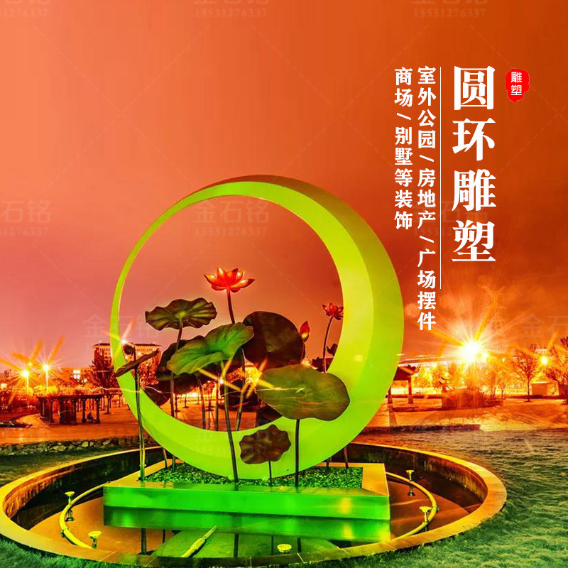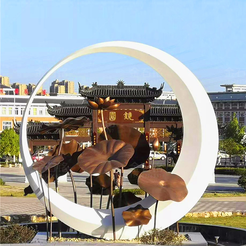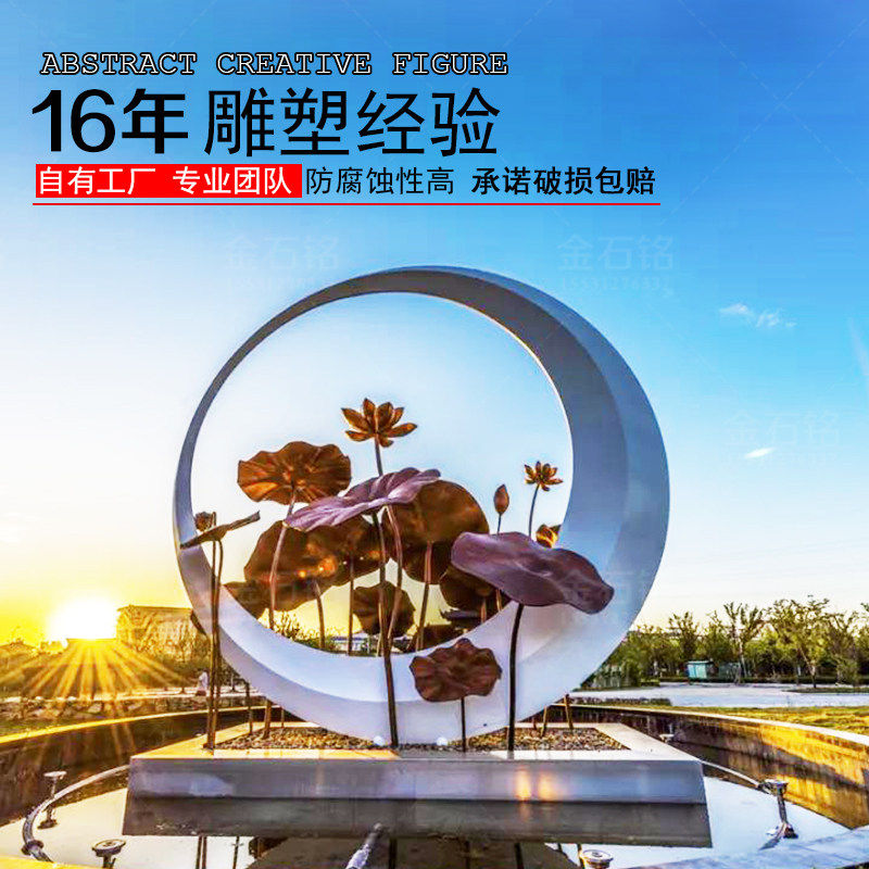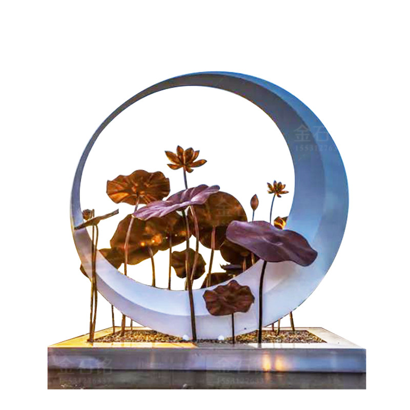 Stainless steel lotus moon ring sculpture mirror luminous pool landscape custom garden square and implication ornaments