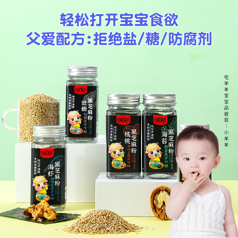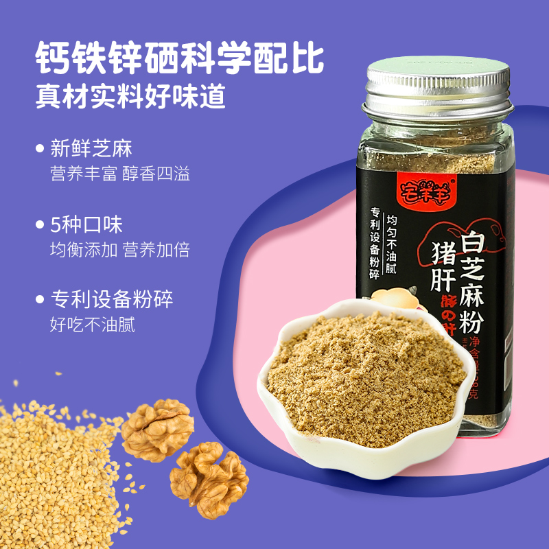 Pork liver white sesame powder Oyster black sesame powder Sea shrimp black sesame powder Walnut black sesame powder Seaweed black sesame powder