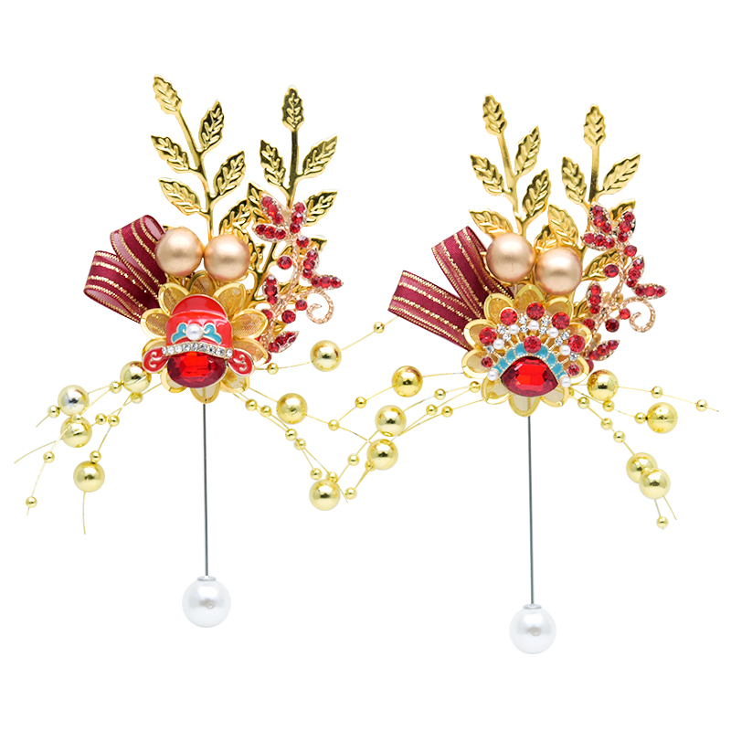Guochao Peking Opera Face Spectral Flowers Denier Flowers Denier Chinese Wedding Red Groom bride Don't spend a new brooch