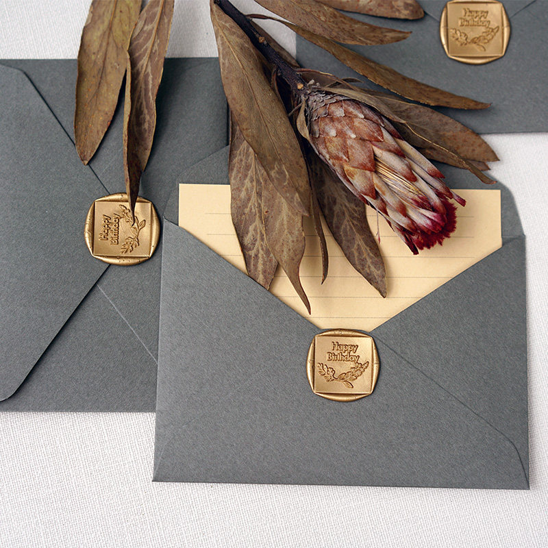 Dark gray fire paint sticker seal happy birthday birthday envelope contains stationery retro literary old