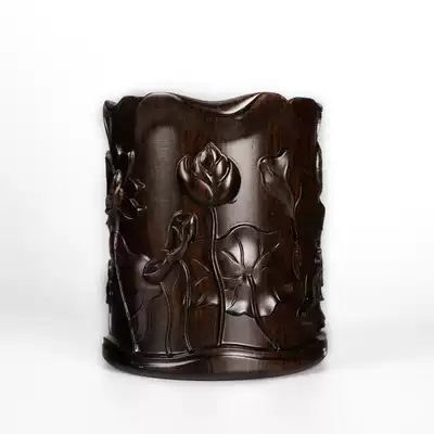 Hongyantang mahogany carving pen holder retro Chinese style business office supplies desktop ornaments Ebony log solid wood study four treasures gifts