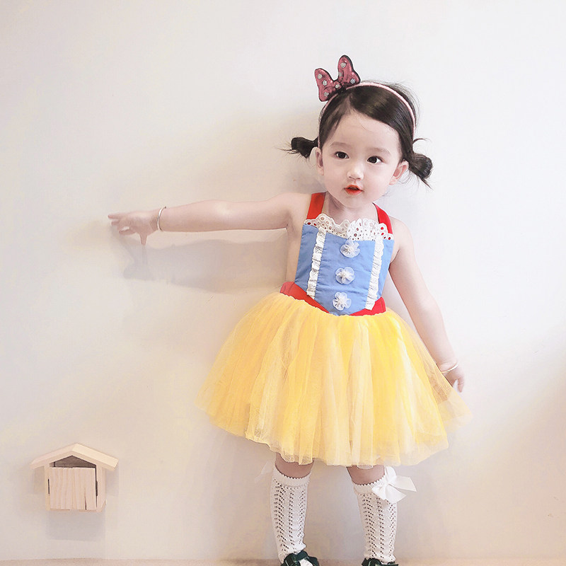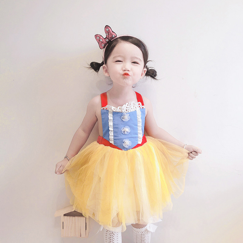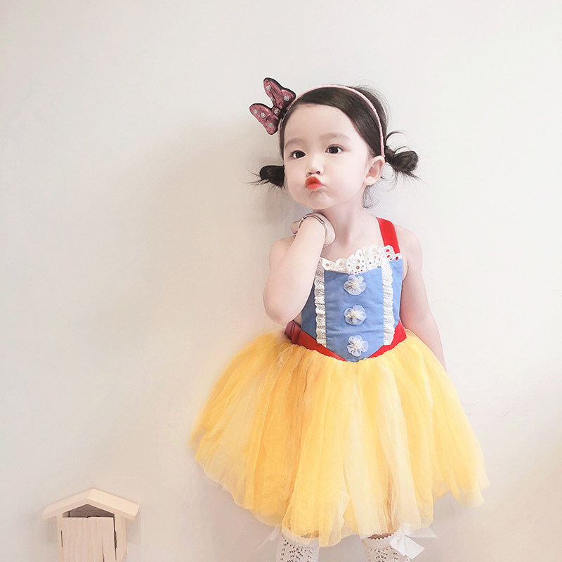 Girls' dress summer one-year-old baby princess dress fluffy yarn Snow White children's skirt
