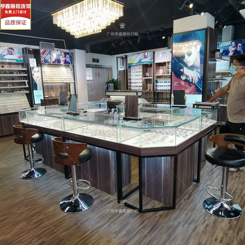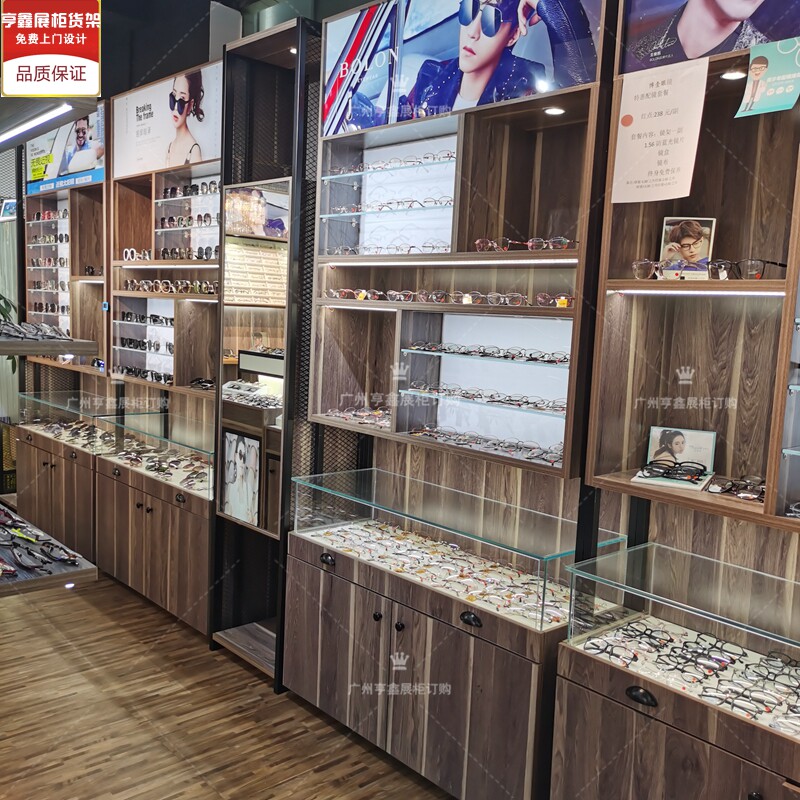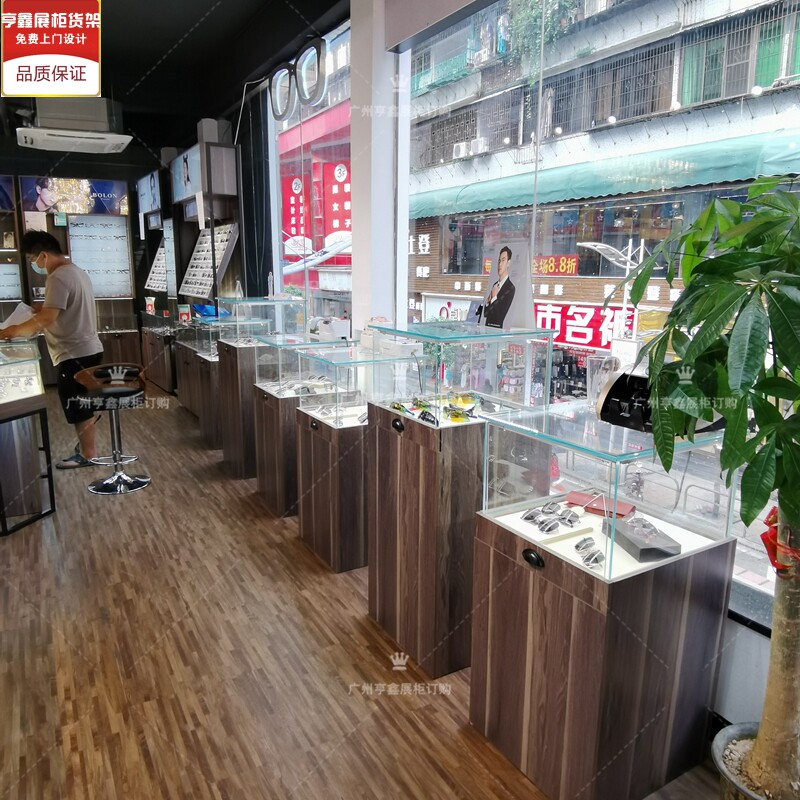 New boutique wood grain paint-free glasses display cabinet display cabinet glass low cabinet double-sided middle island glasses shelf direct sales