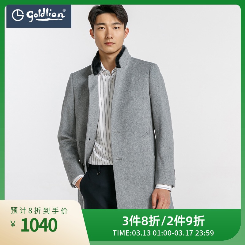 Jinli to autumn and winter new pure wool fabric thick slim body collar medium long version of hair coat man (Hui)