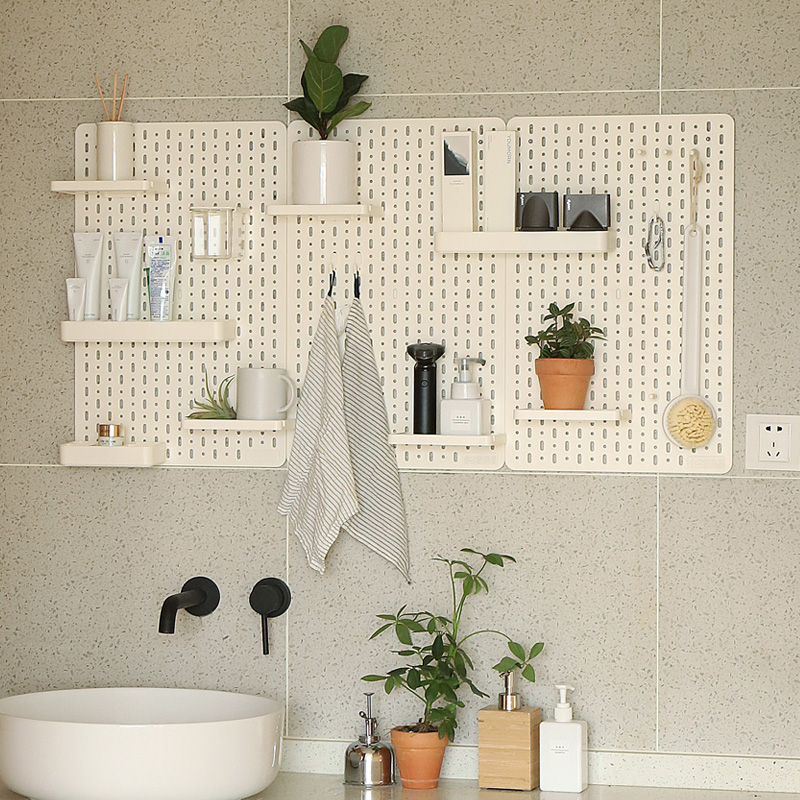 Small wood multi-layer wall shelf Kitchen rack Hole board hole-free shelf Bathroom storage layer shelf