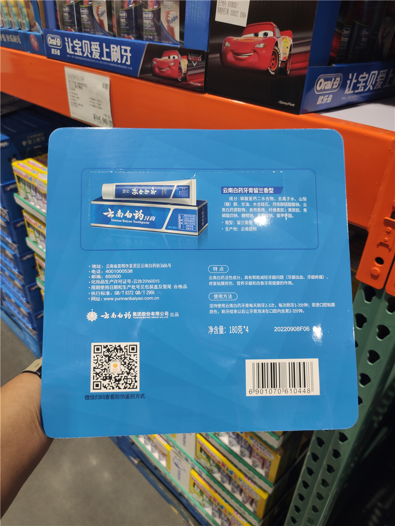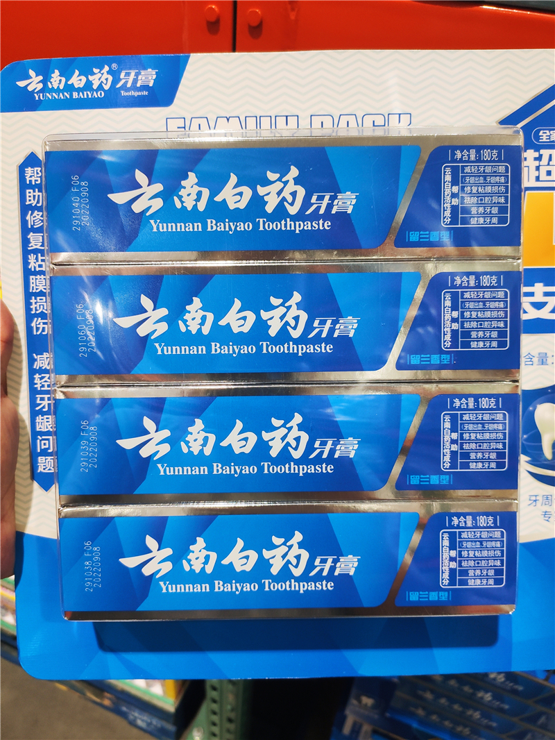 Shanghai COSTCO Kaishi Guest Yunnan Baiyao Toothpaste Spearmint Breath Fresh 180g * 4 Pack