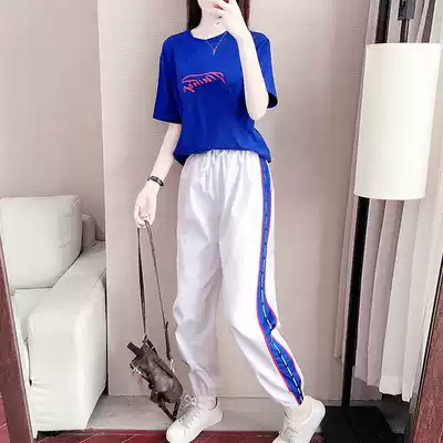 2021 new summer net red sports suit women's short-sleeved student wild short T-shirt nine-point pants casual two-piece