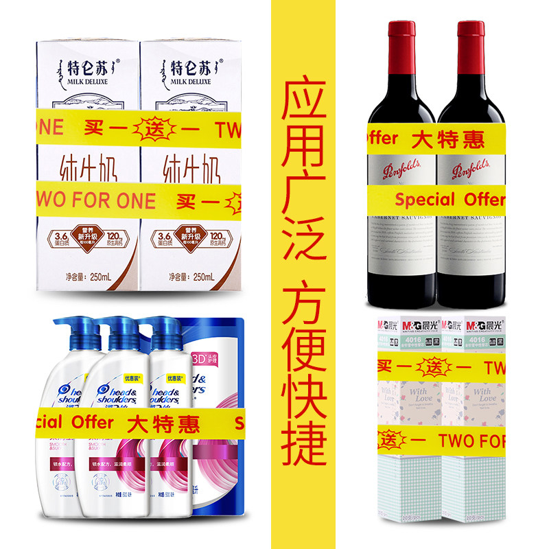 Pint Shang-mei Plastics Buy One Tape Shopping Mall Supermarket Promotional Tape Bundling Rubberized Rubberized Rubberized Adhesive Tape 18mm Long