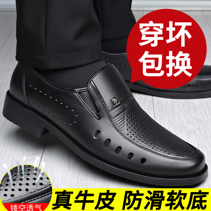 Leather Shoes Men's Summer Breathable Genuine Leather Sandals Slim Fit Business Dress Casual White Hollowed-out Soft Leather Soft Bottom Men's Shoes-Taobao