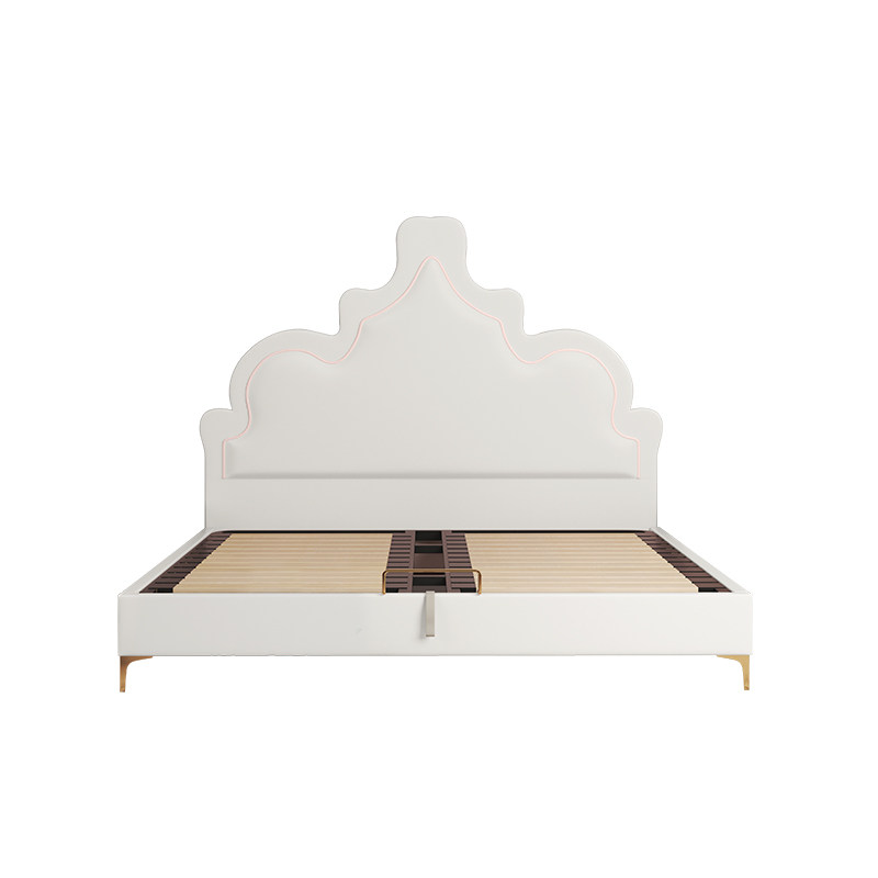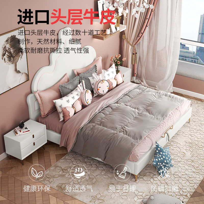 Nordic White Genuine Leather Bed 1 8 m Main Sleeper Wedding Bed Light Lavish Double Solid Wood Bed Modern Minimalist Princess Containing Bed