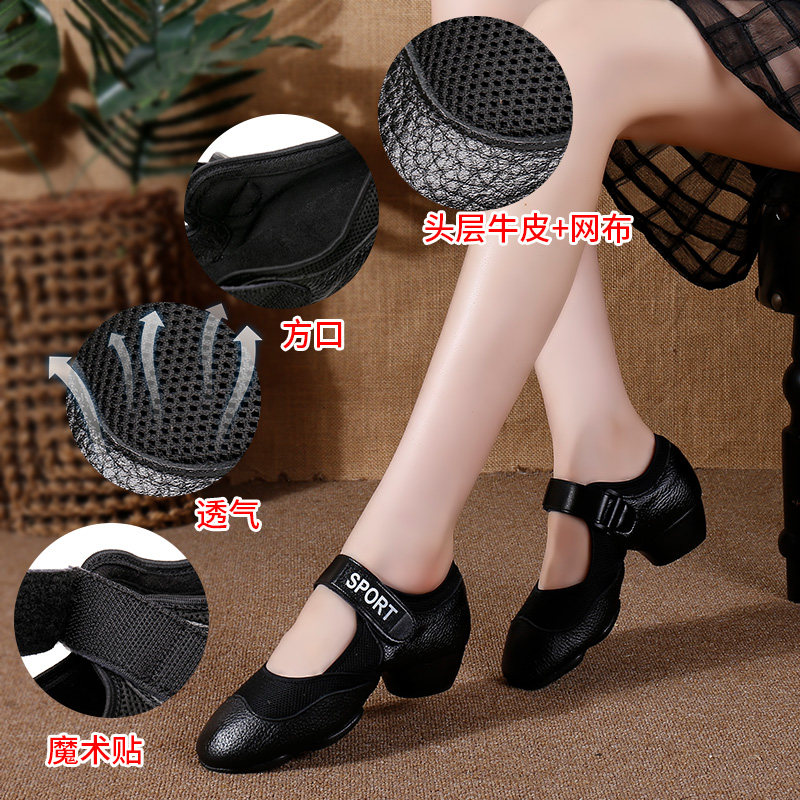 Summer Dancing Shoes Women Soft-bottom Genuine Leather with Water Soldiers Dance Outdoor Social Dance Lady Square Dance Shoes