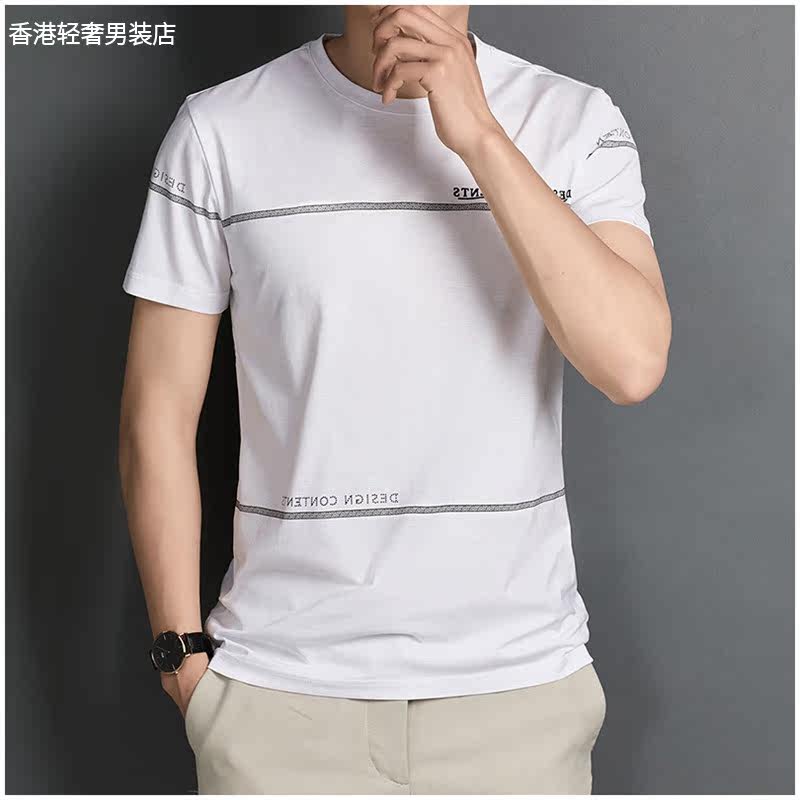 Ice Silk T-shirt Male 2022 Summer thin Loose Trend Round collar T-shirt men 100 hitch Tide Cards Half Sleeve Men's Clothing