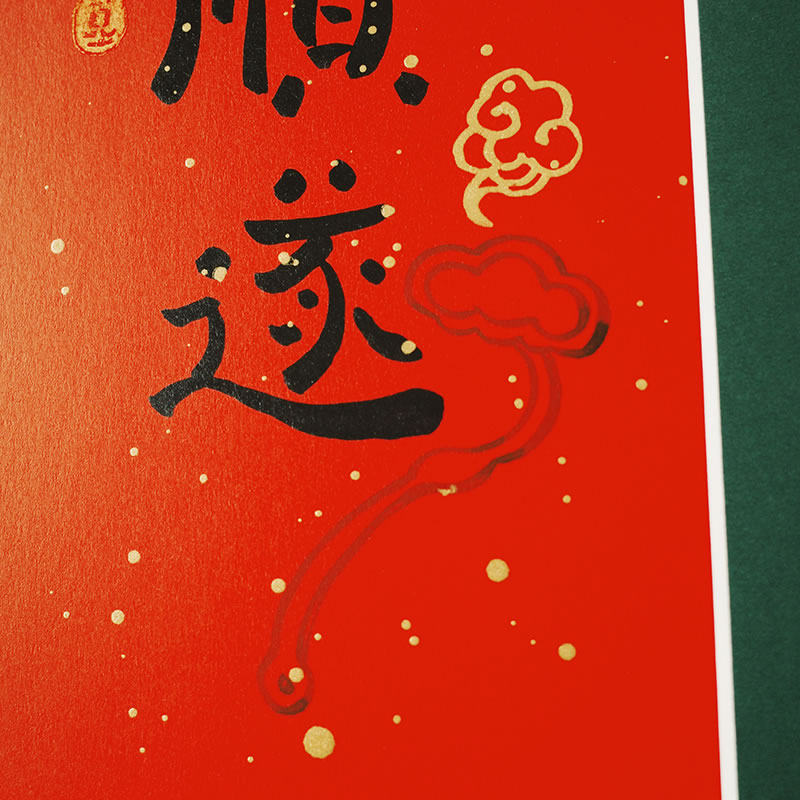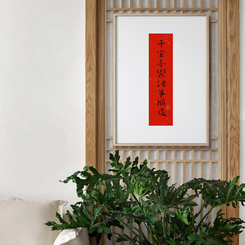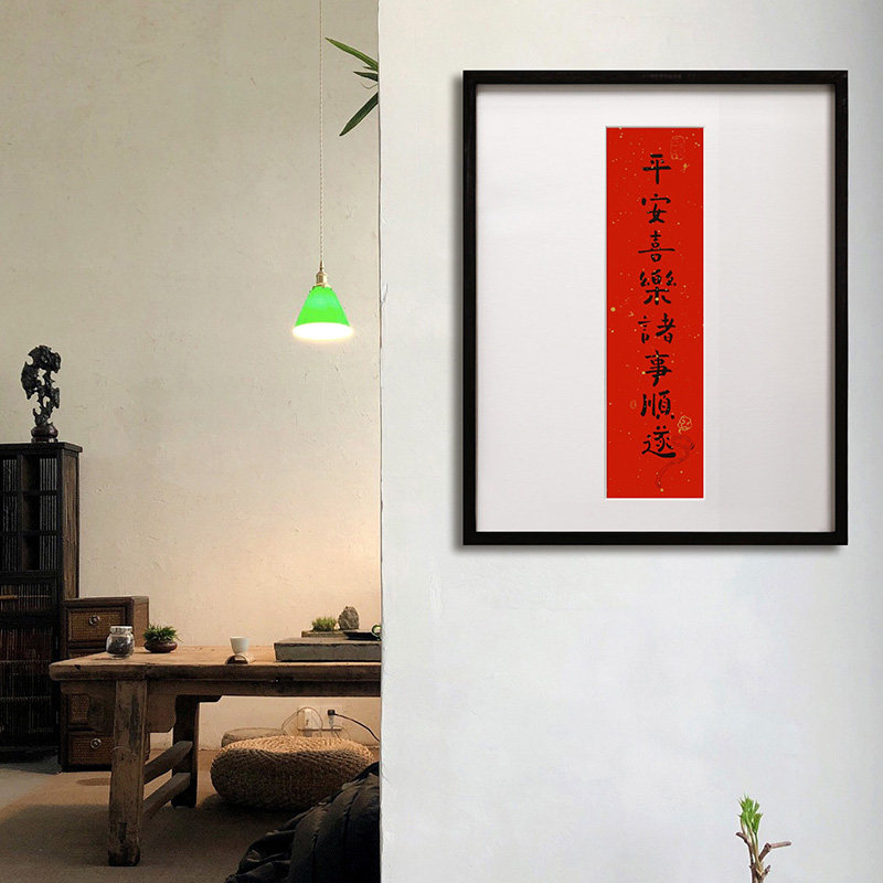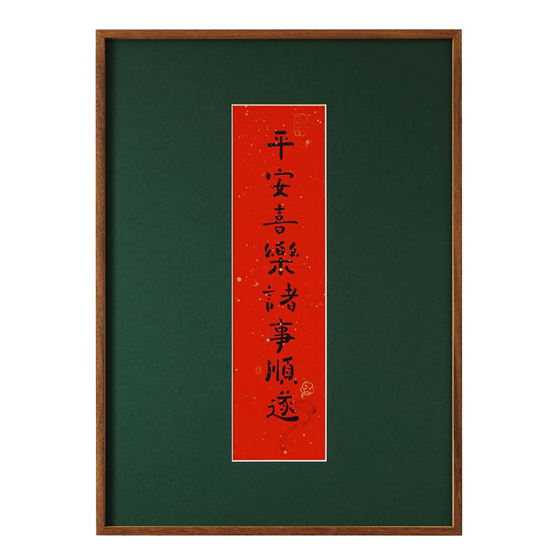 Handwritten hand-painted calligraphy works solid wood decoration painting Ping An Happy Modern Chinese New Classical Japanese style tea room character painting