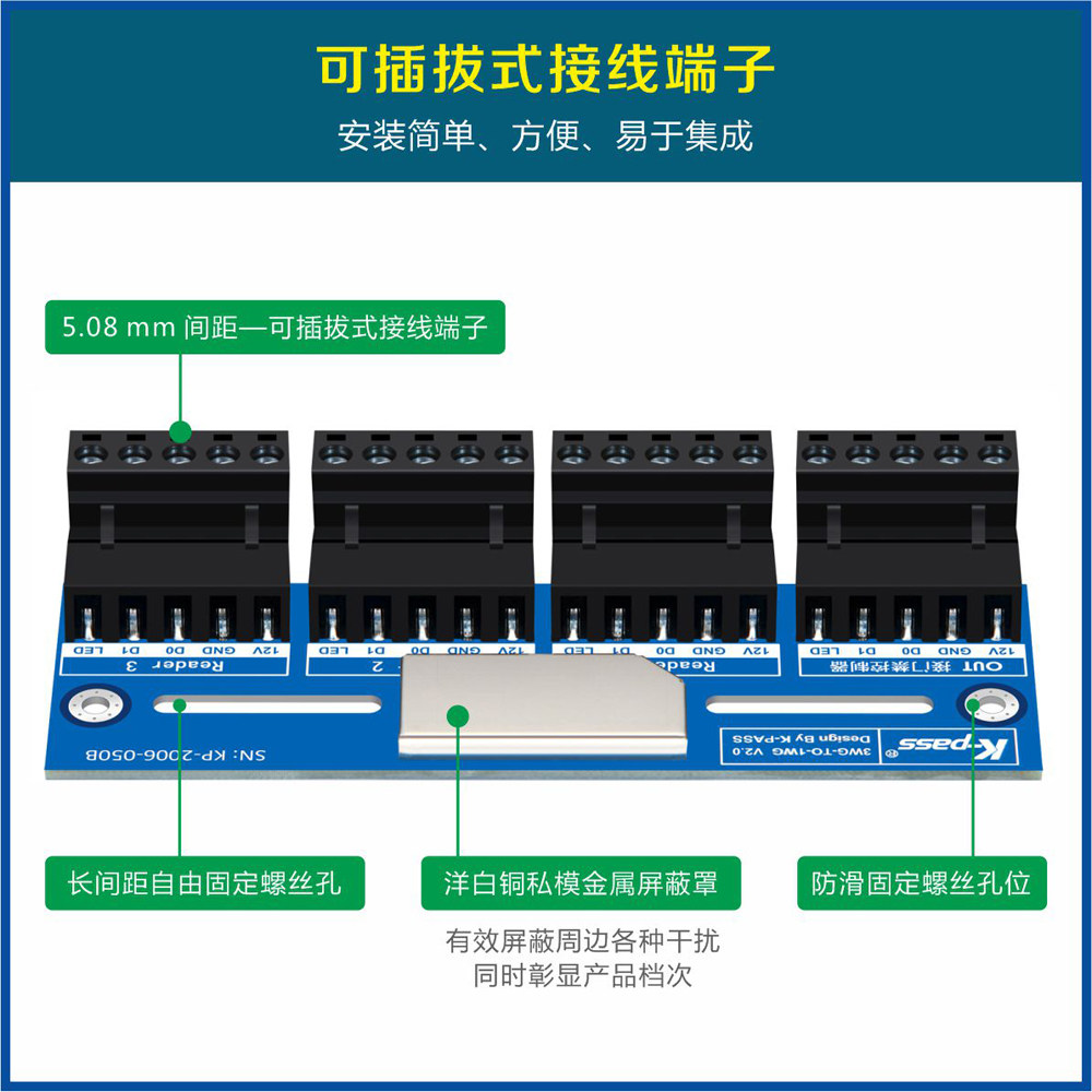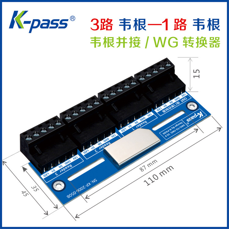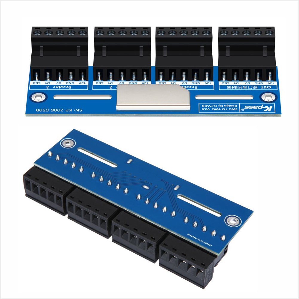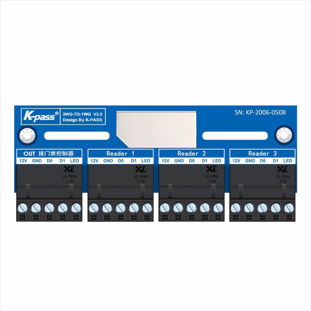 Multiple groups of 3-Way 2-way access control card reader to 1 set of Wiegand Wegan and connected 2 in 1 Wegan Converter