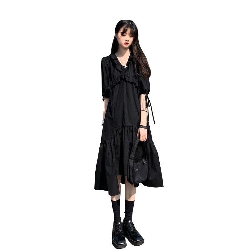 Autumn New Year's dress female fat mm 2022 new autumn temperament waist and thin black dress to cover the belly