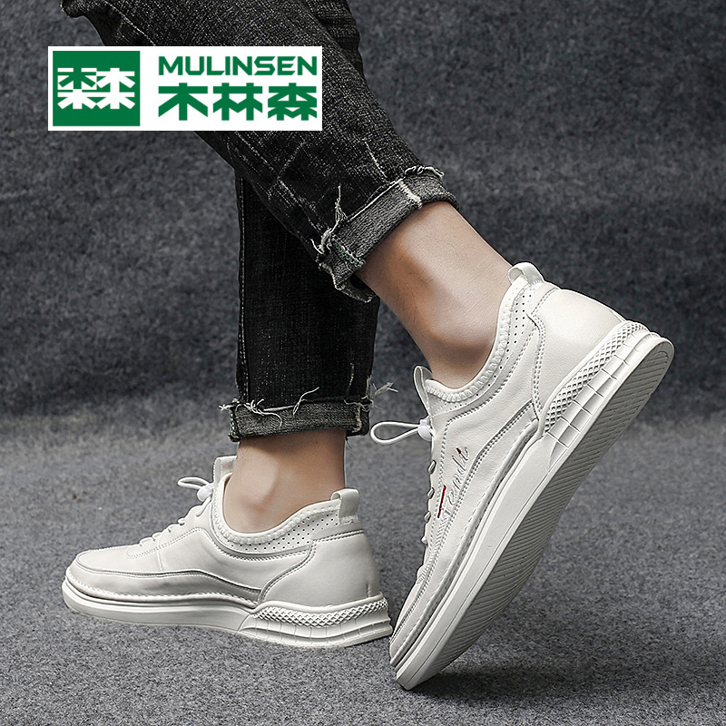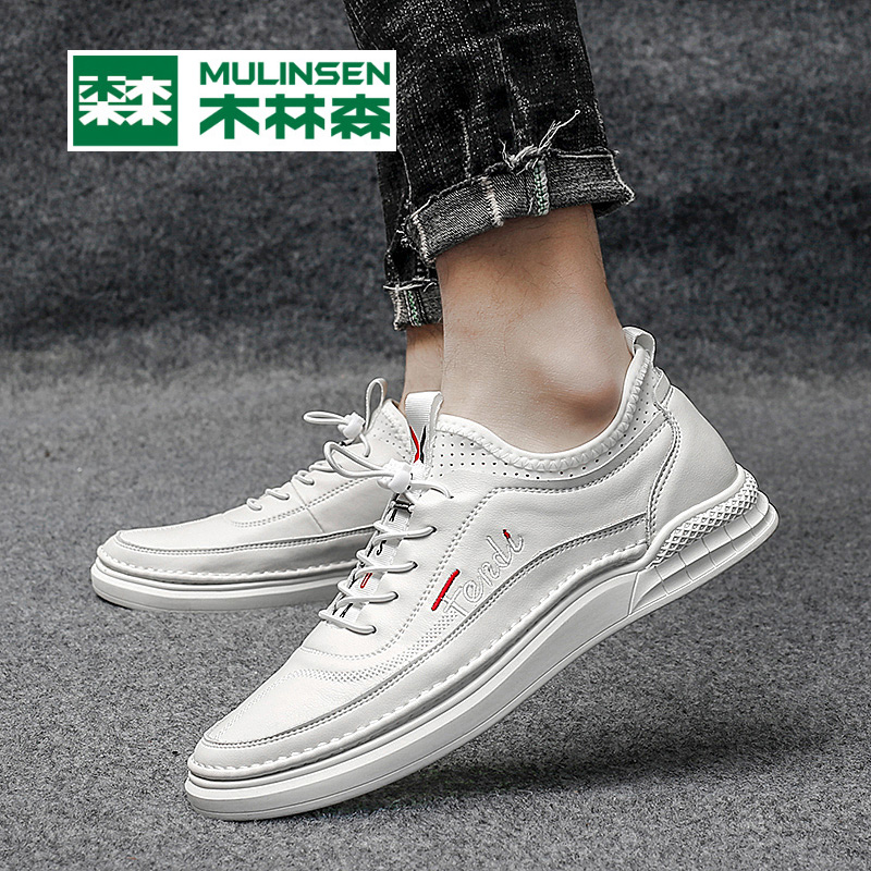 Mulinsen men's shoes summer leather men's casual white shoes all-match trend sports shoes leather 2021 new