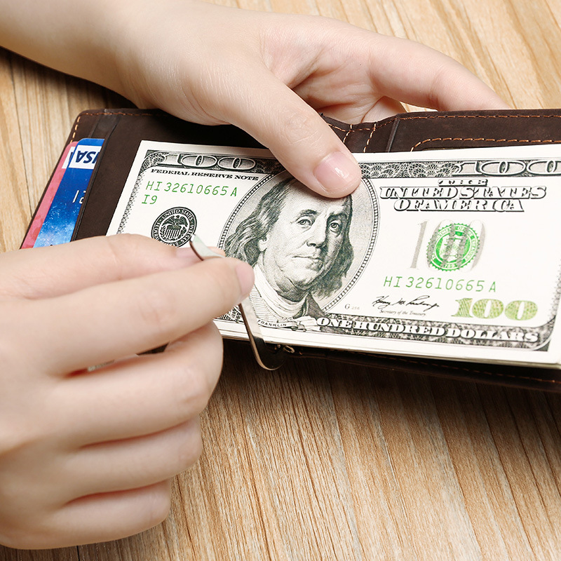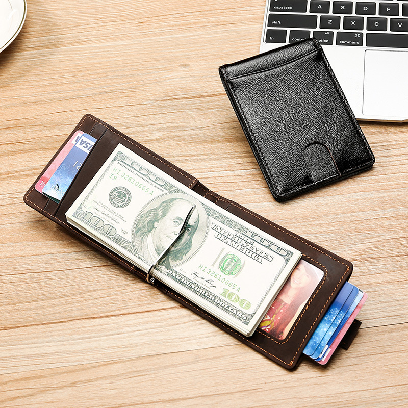 Europe and the United States casual retro crazy Horse leather ultra-thin RFID anti-theft brush men's wallet dollar clip Leather matte wallet