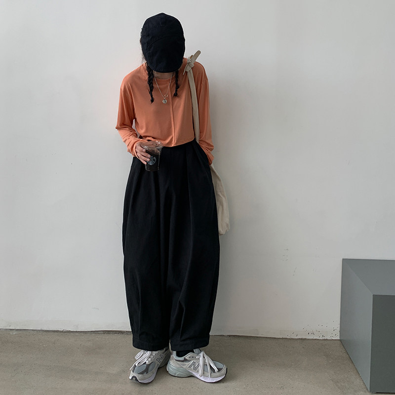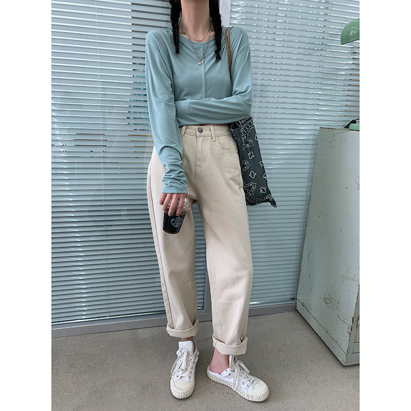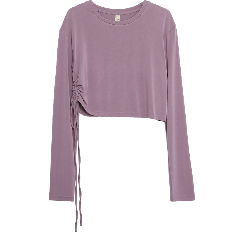(Buy one get one free)Red Museum drawstring T-shirt women's autumn popular Korean version long-sleeved white crew neck short bm top