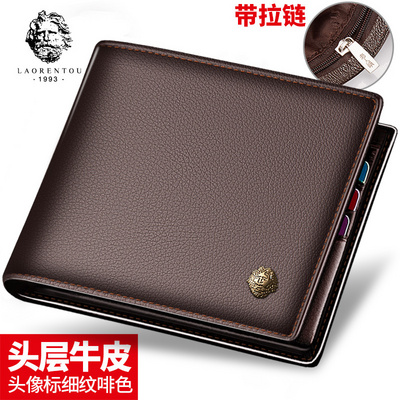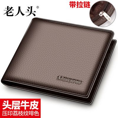 Brand wallet Male with short Genuine Leather Cross Section Head Layer Cow Leather Business Pull Chain Money Clip Pocketbook Men's Clothing Little Money Package Bag