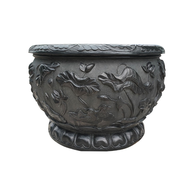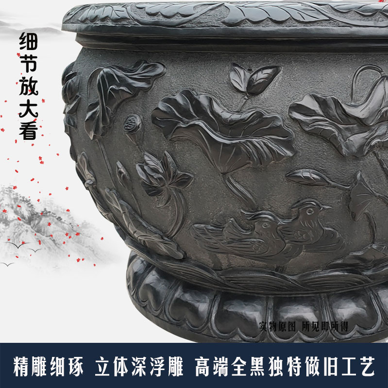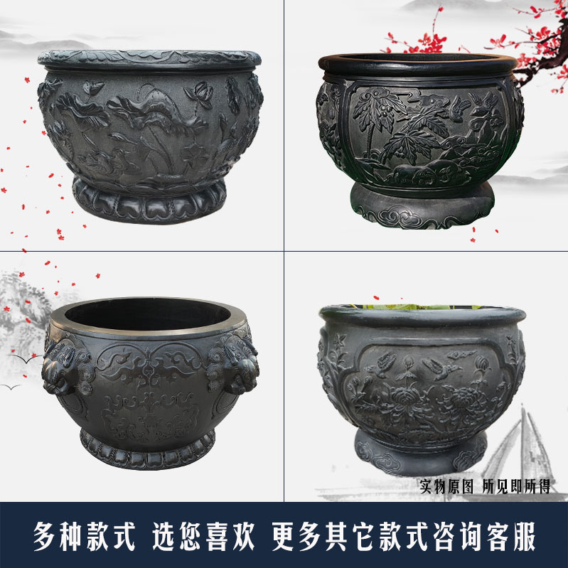 Stone carving fish tank flower pot green stone imitation ancient stone cylinder lotus flower stone basin courtyard stone fish fish round basin for money and water cylinder swing piece