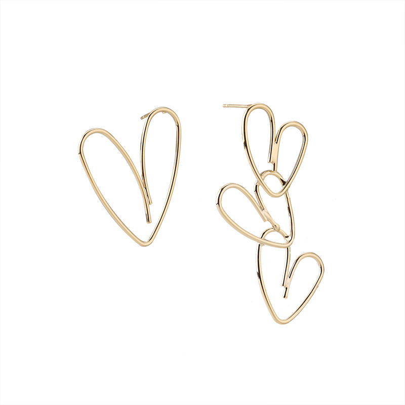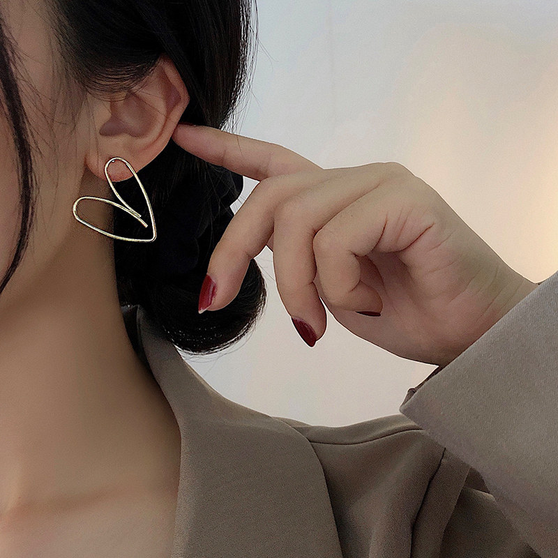 Asymmetric hollow love earrings temperament net red simple summer earrings cool wind female 2022 new ear needles