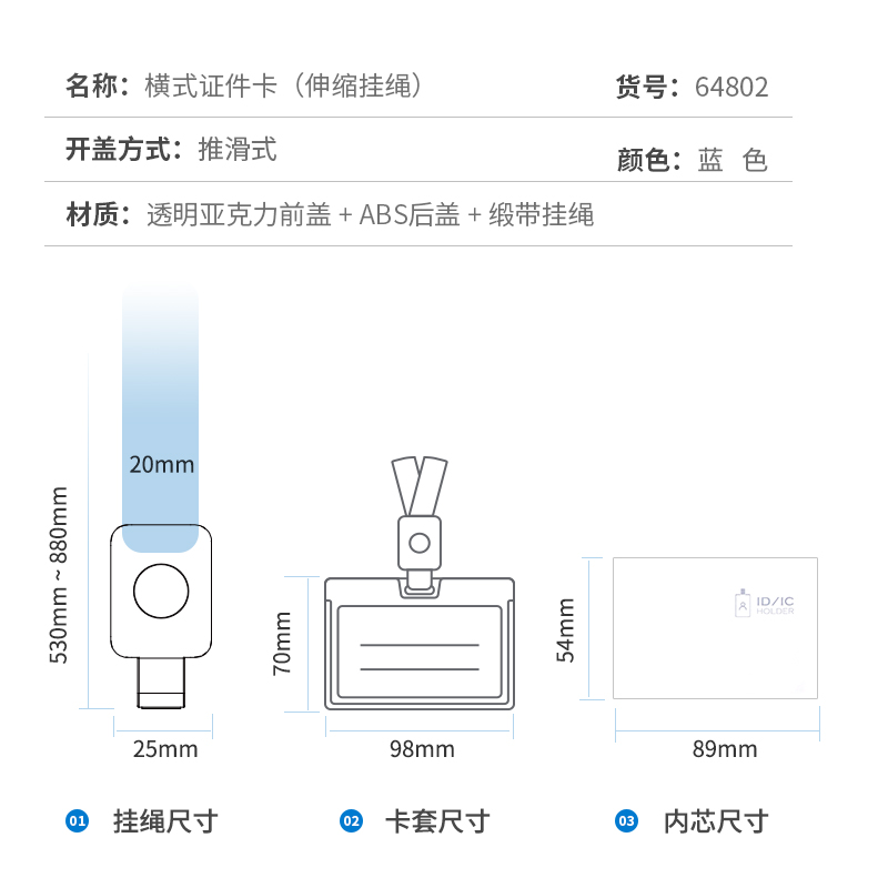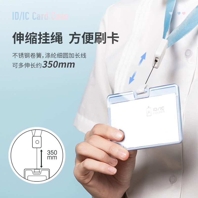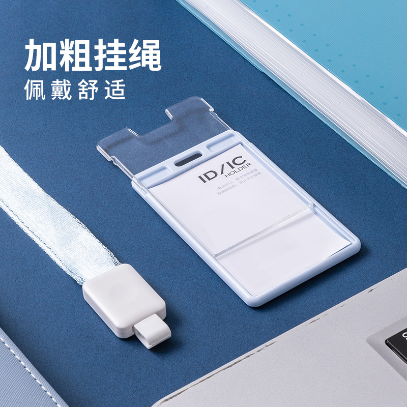 Deli 64802 work card id sleeve with lanyard telescopic buckle employee badge badge badge bus card set factory meal card protection sleeve student listing clip ID card