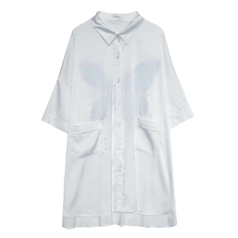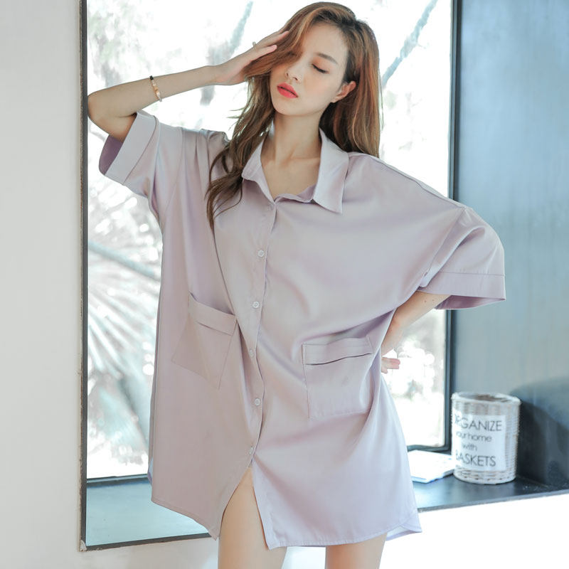 Nightdress women's 2022 new summer ice silk short-sleeved thin section sexy Korean version sweet long version loose large size pajamas