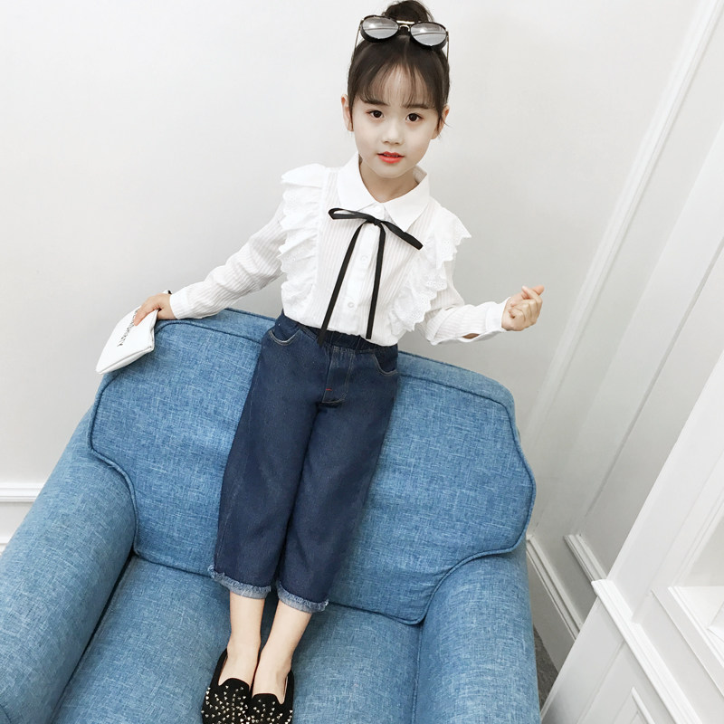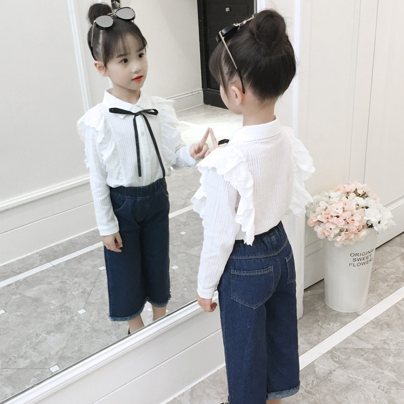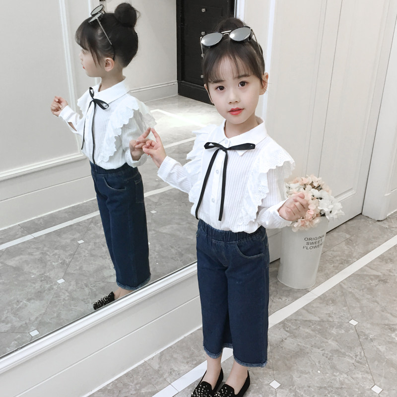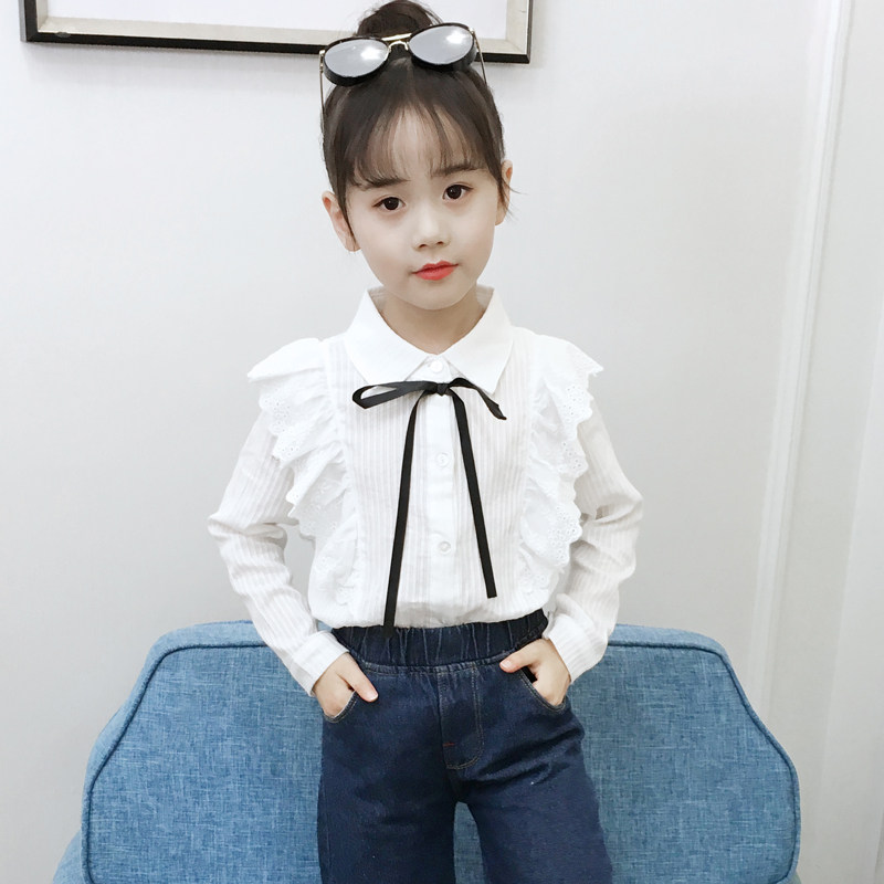 Girl Spring Dress Shirt 2022 New Children Spring Autumn 5 Foreign Pie Shirt Long Sleeve Pure Cotton 6 White 8 Han Version 9 Year Old Tide