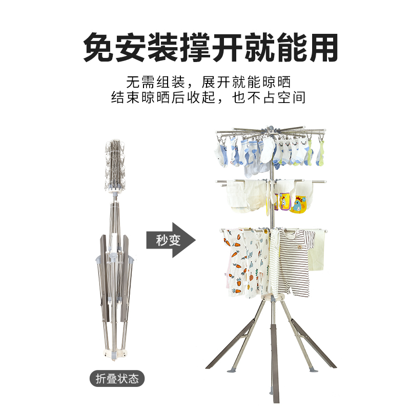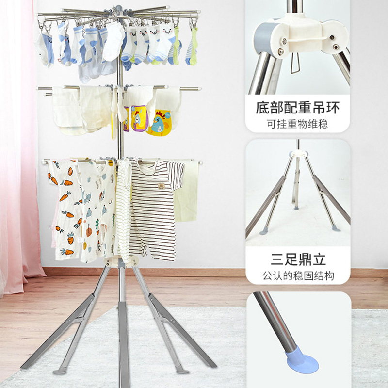 Aluminum alloy baby clothes rack Floor folding multi-function drying artifact Newborn children's clothes rack Baby diaper rack