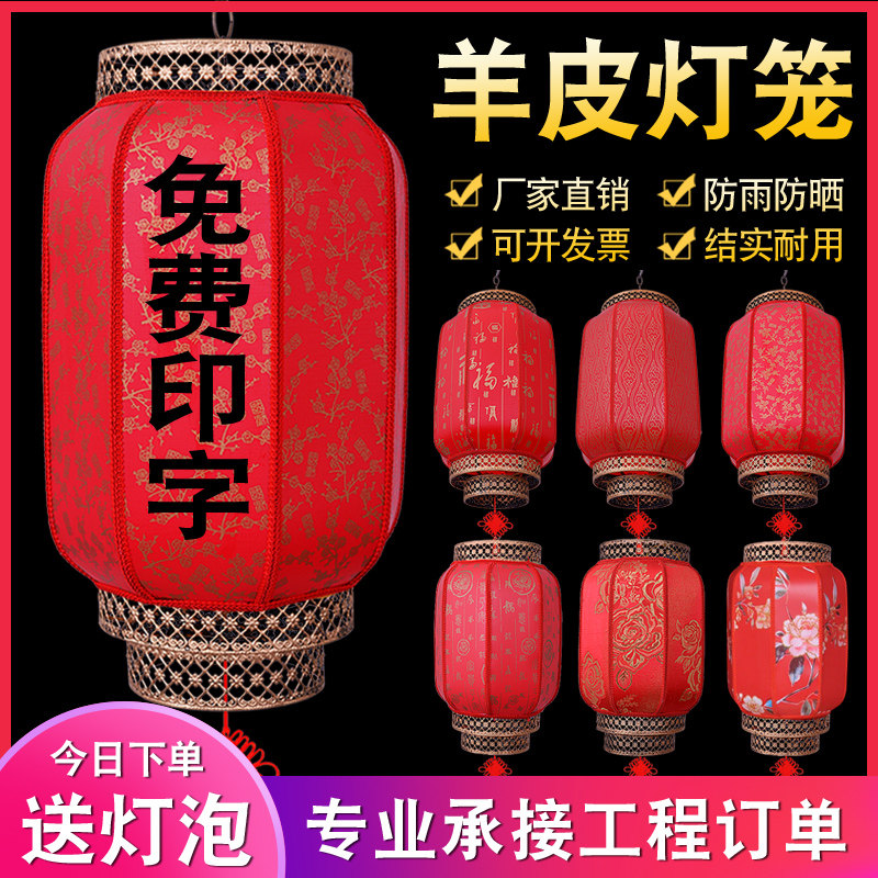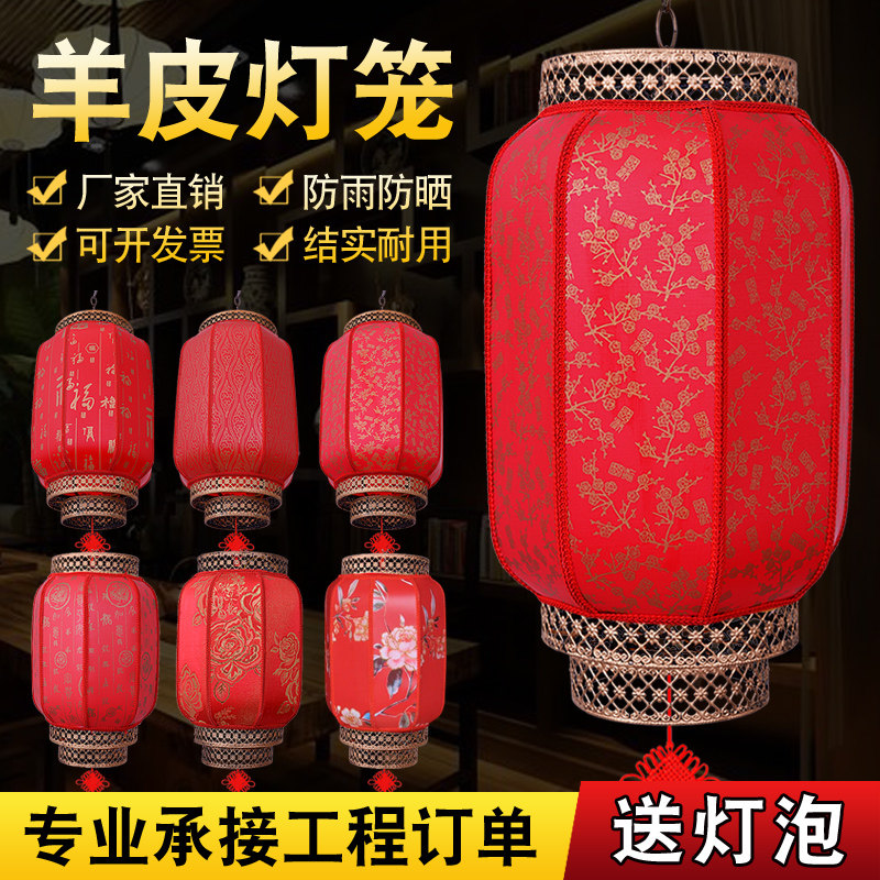 Balcony lanterns Outdoor waterproof sunscreen Chinese style red lamb leather hanging lamp hanging decoration Chinese wind advertisement Custom hotel decoration