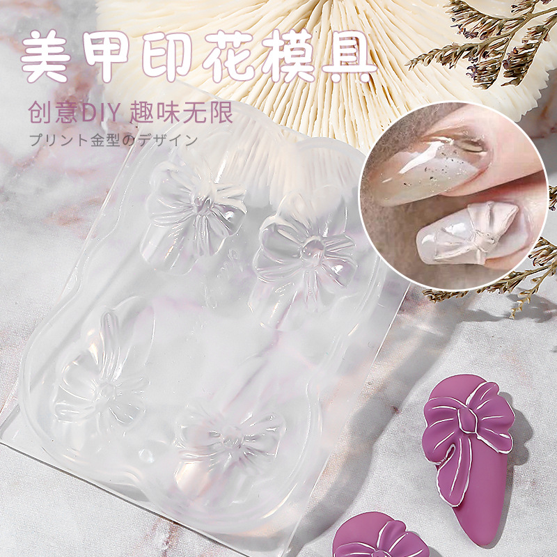 Xiaohongshu net red manicure light French half sugar bow mold 3D three-dimensional carved silicone mold easy to demould