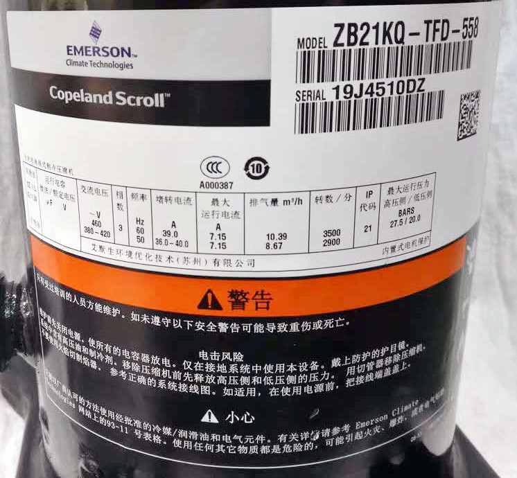 ZB21KQ-PFJ-558 ZB21KQ-TFD-558 Original Emerson Valley Wheel 3 hp refrigerator compressor