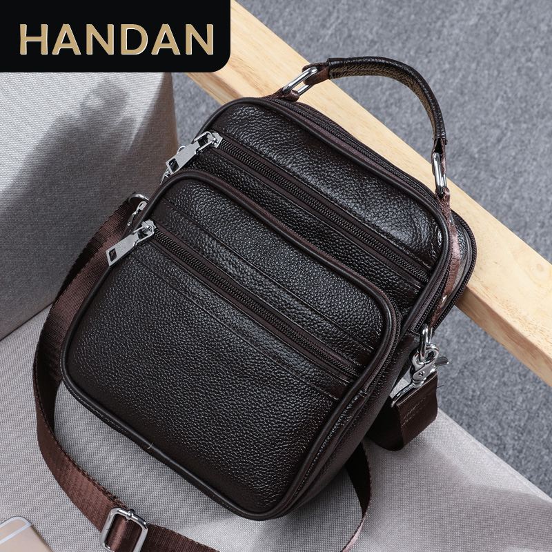 Bag Men's Shoulder Bag Leather Soft Leather Small Handbag Messenger Bag Tide Brand Business Large Capacity First Layer Leather Backpack