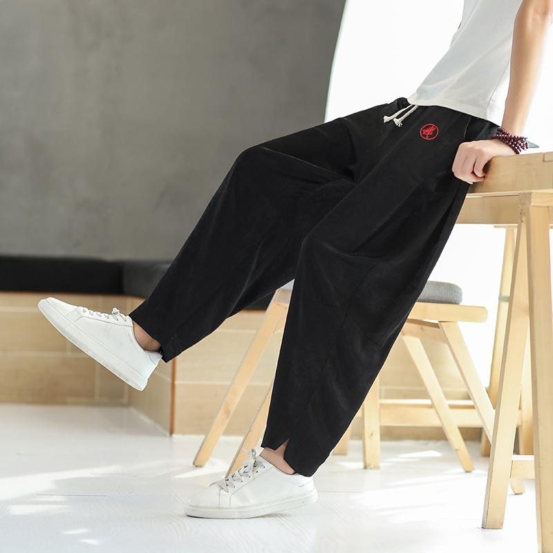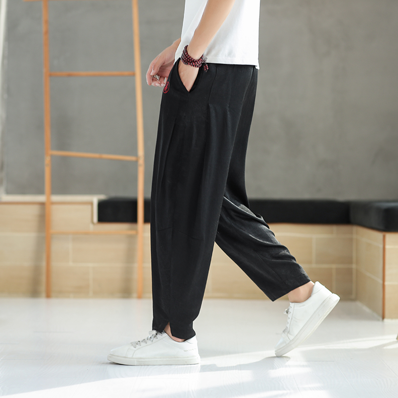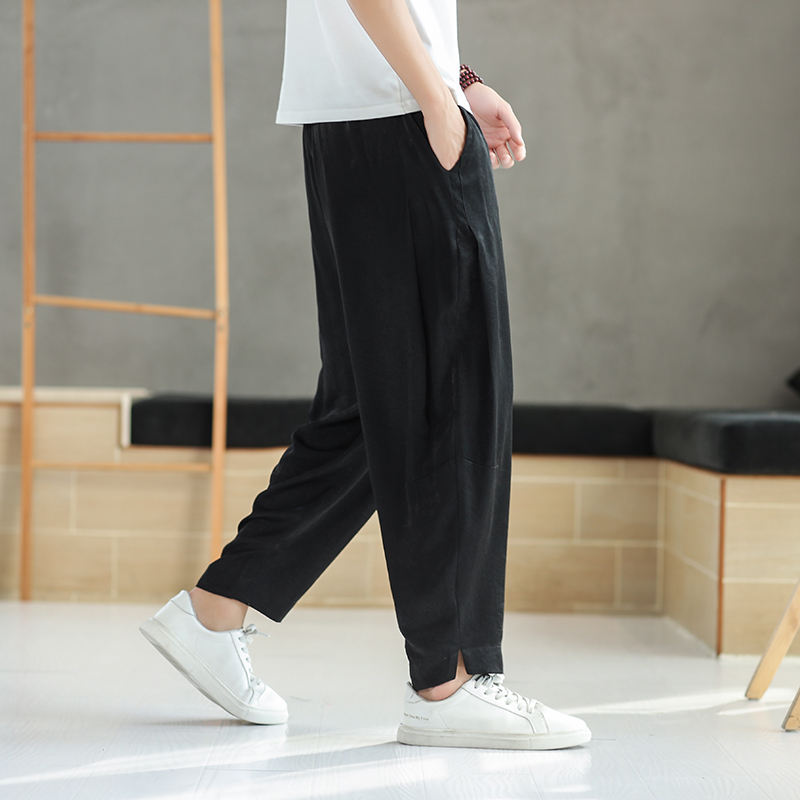 Summer slim Ice Silk Broadlegged Pants Male Loose Large Size Yard Silk Harynn Pants Small Footed Roperin Casual Pants Chubby Pants Fat Long Pants