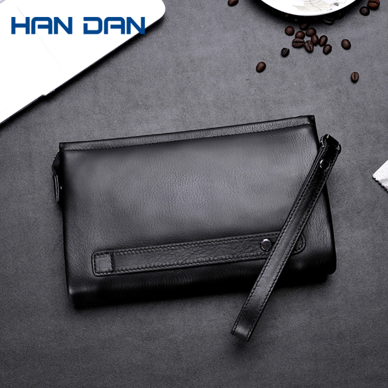 Men's Handbag Genuine Leather Soft Leather Clutch Korean Casual Large Capacity With Wristband Mobile Phone Bag First Layer Leather Clip Bag