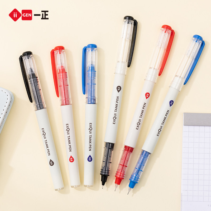 iigen Yizheng stationery straight liquid water-based ballpoint pen needle-type quick-drying neutral pen black 0 5mm student with business office signature pen financial professional pen