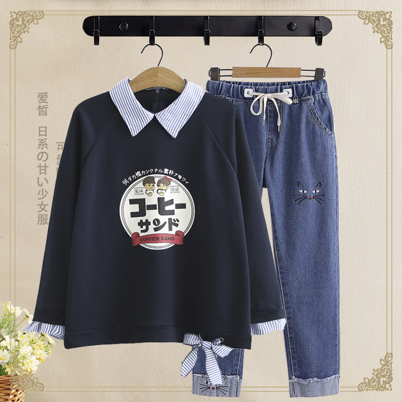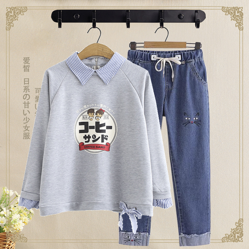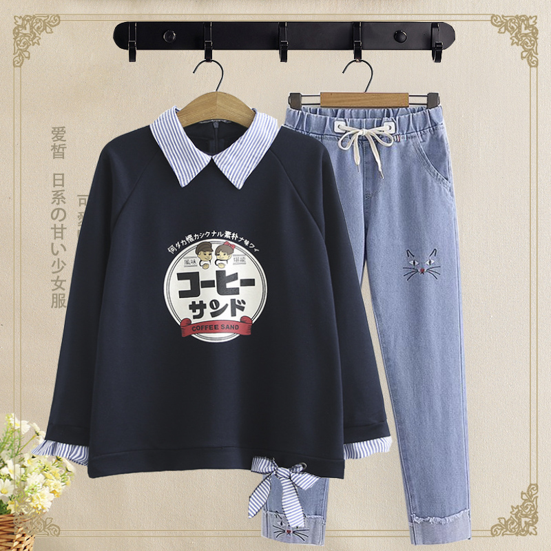 Middle school students spring and autumn women's suit 20 new Korean version junior high school students college style loose girl casual two-piece set 15
