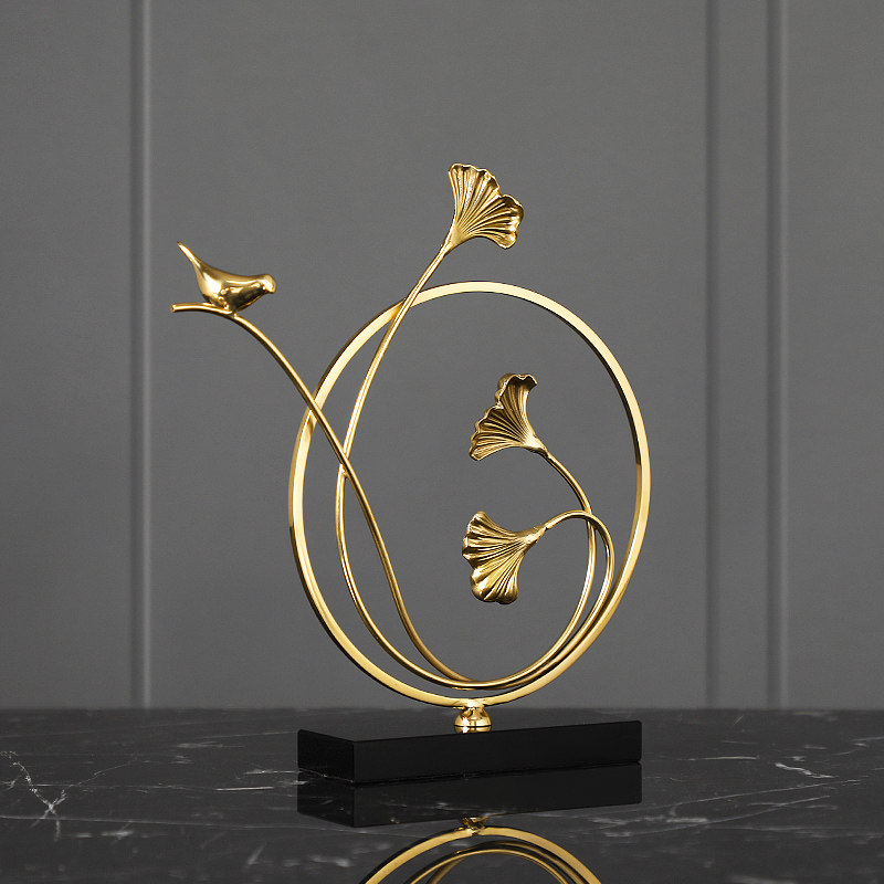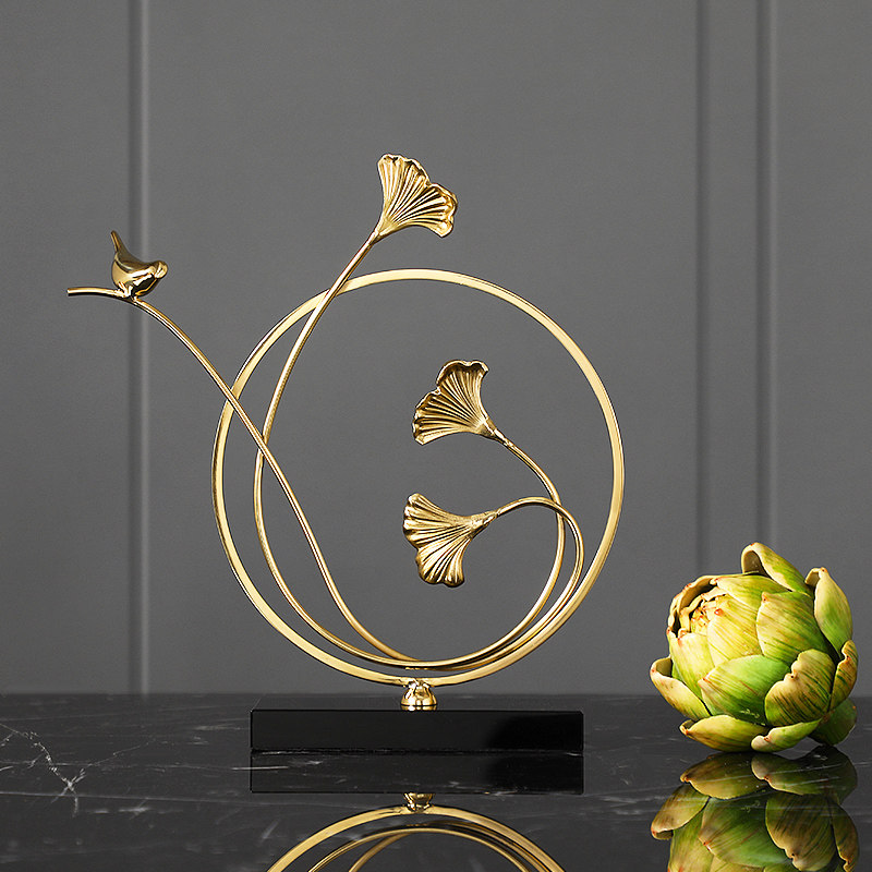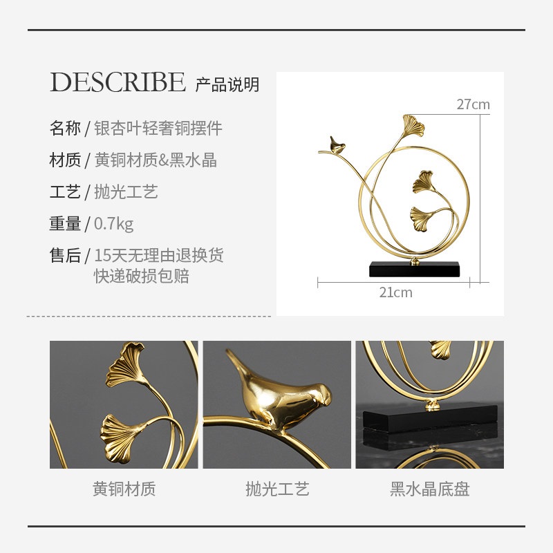 Modern light luxury ginkgo leaf brass ornaments home accessories creative living room desktop decoration art wine cabinet furnishings
