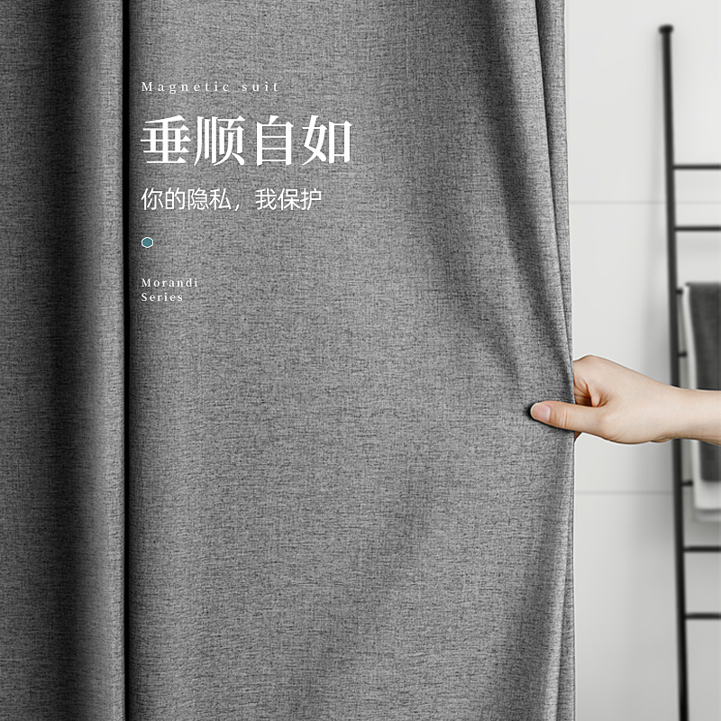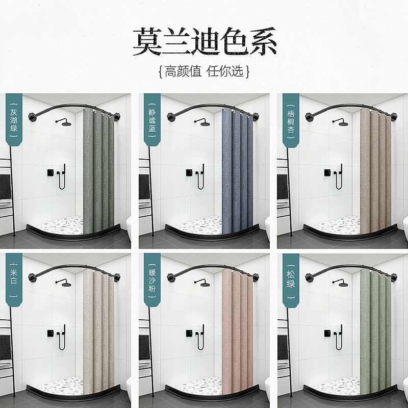 Bathroom Magnetic Waterproof Mold and Mold Curtain Toilet Dry and Humidity Separation Arc Bath Set Set with Punch-free Japan