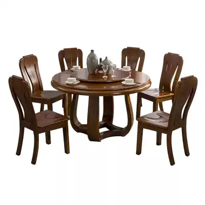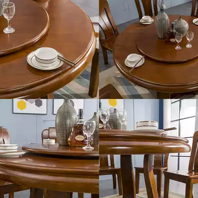 New Chinese full solid wood dining table with turntable round table home Nordic walnut color combination large round table rice