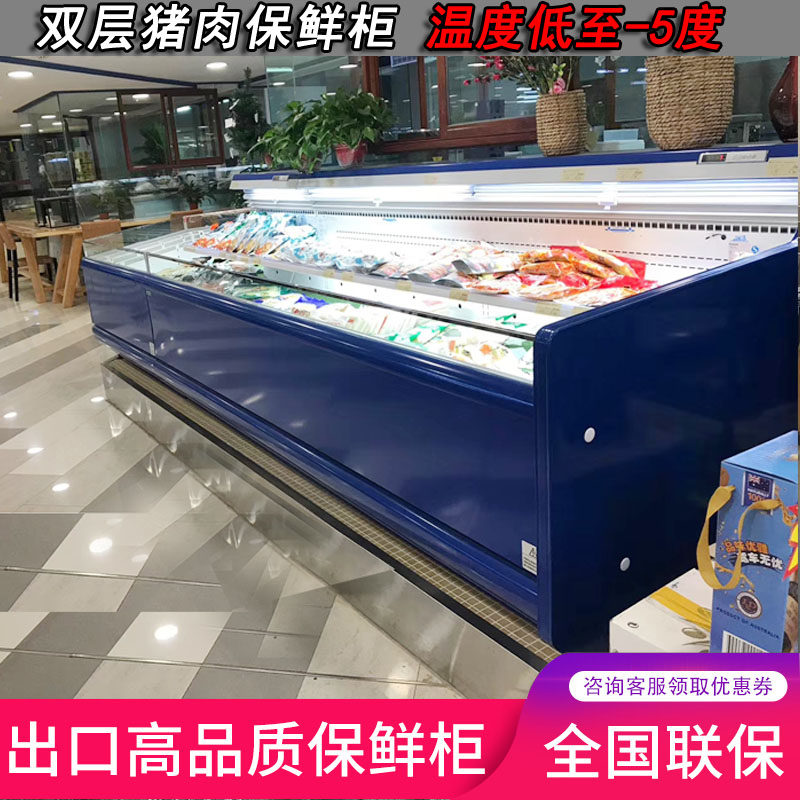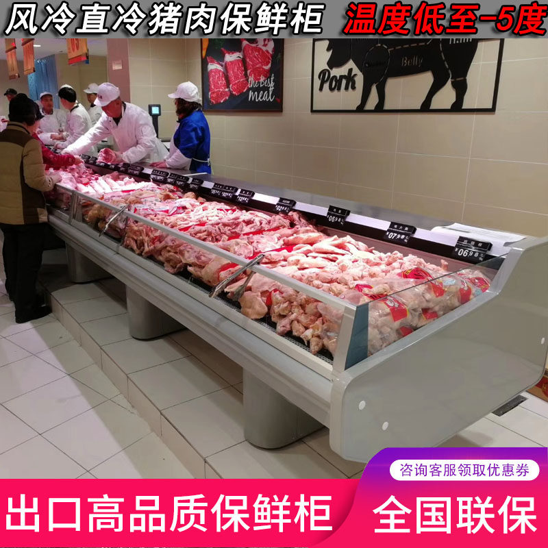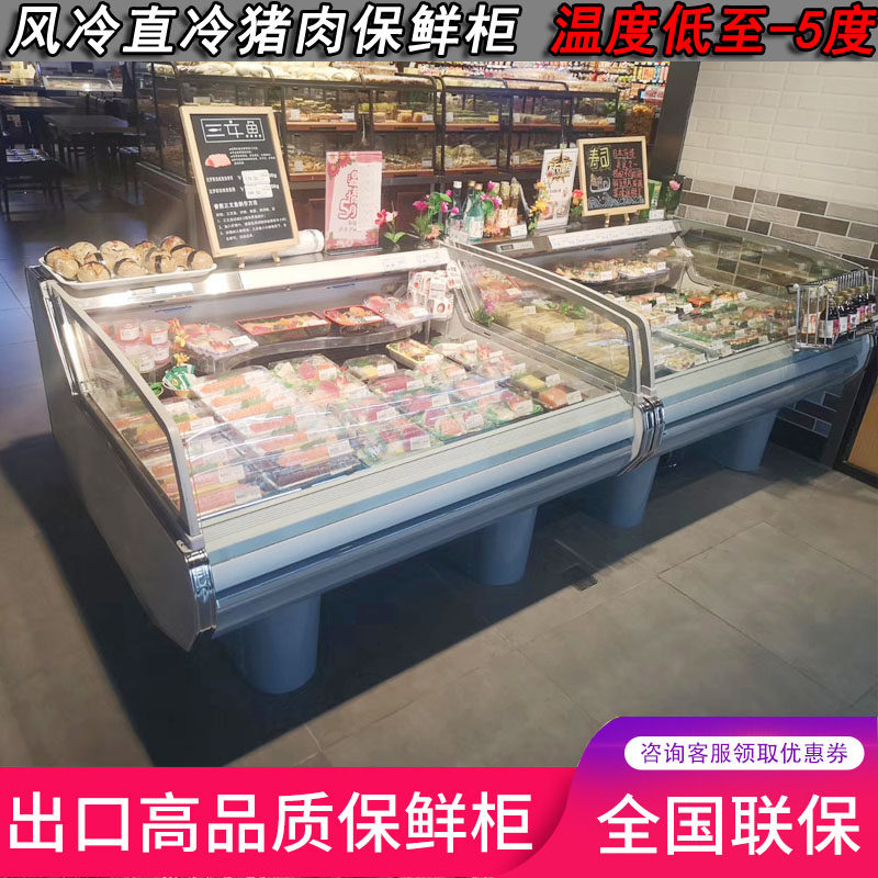 Fresh Meat Cabinet Supermarket Commercial Straight Cold Air-cooled Display Cabinet Cold Fresh Meat Cupboards Cooked Pork Refrigerated Fresh Fridge Freezer Freezer