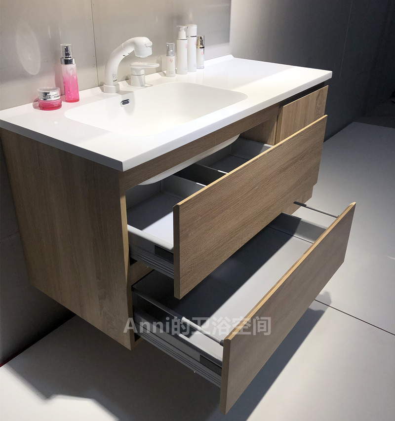 Little Red Book recommends Nordic minimal bathroom cabinet combined artificial stone wash basin solid wood wash table custom size