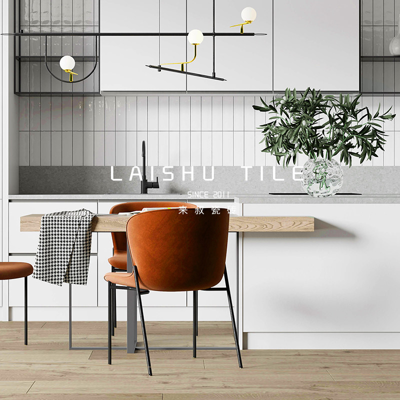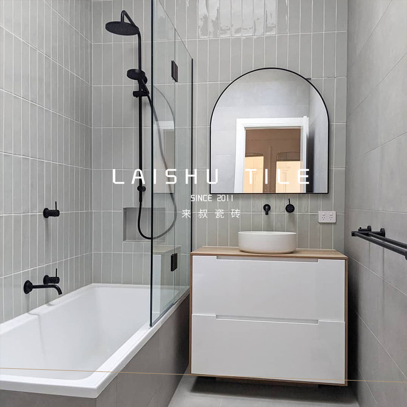 Nordic small fresh long strip small white brick 300600 kitchen mint green wall brick toilet bathroom concave-convex tile